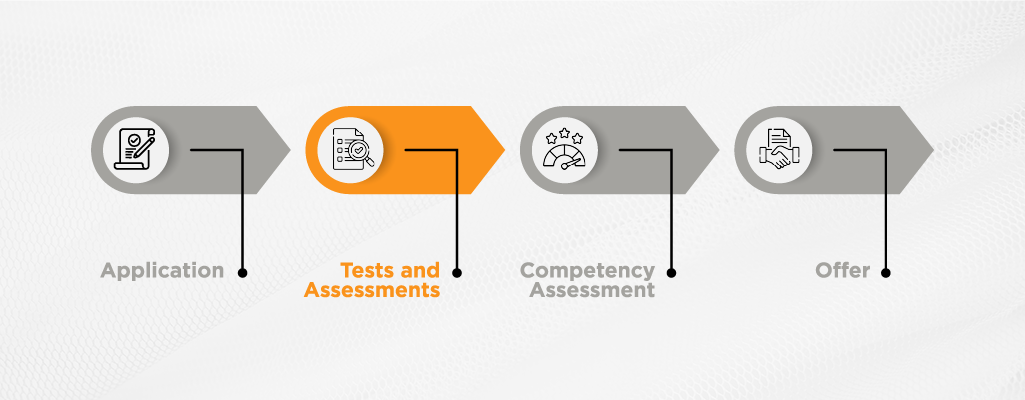 Tests and assessments can vary depending on the requirements and level of the role; so, candidates applying for different positions may be evaluated with different tools during their recruitment journey. -